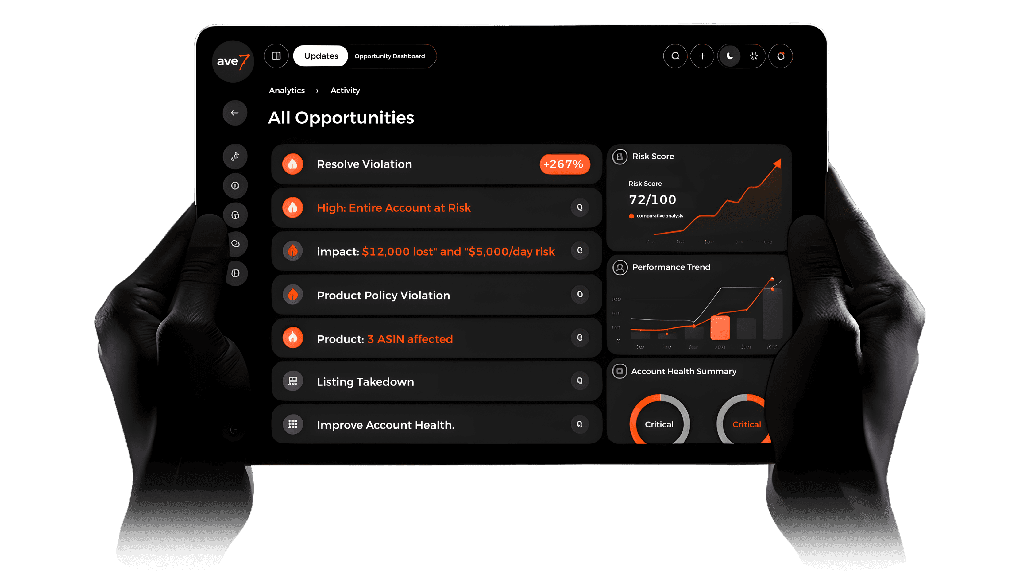 ave7LIFT was built to bring compliance, listings, account health, logistics, and enforcement into a single operating view.